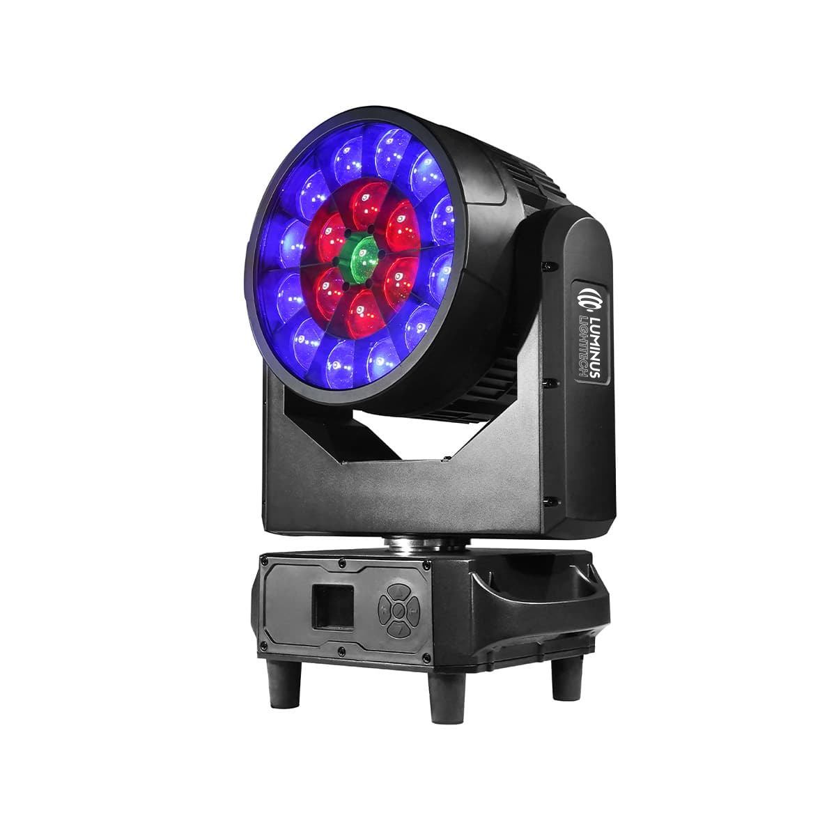 The Luminus LU1940Mini-IP is a compact yet powerful IP65-rated wash beam featuring 19 × 40 W RGBW 4in1 LEDs. Despite its small size, it delivers impressive brightness, vivid color mixing, and creative effects including bee-eye and pixel control.